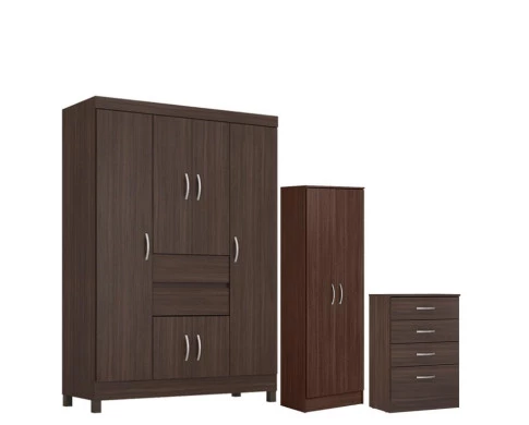 Guarda Roupa Casal Ecom 2 com Multiuso Golden com Cômoda Astral Café - Demóbile
