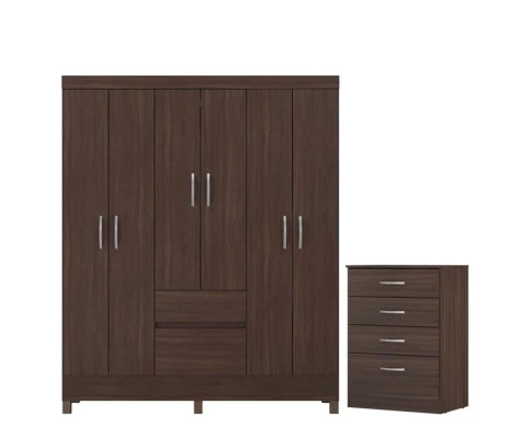 Guarda Roupa Casal Flash 2 com Cômoda Astral Café Touch -Demóbile