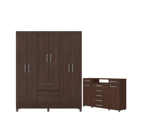 Guarda Roupa Casal Flash 2 com Cômoda London Café - Demóbile