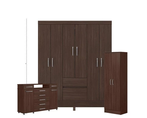 Guarda Roupa Casal Flash 2 com Multiuso Golden com Cômoda London Café - Demóbile