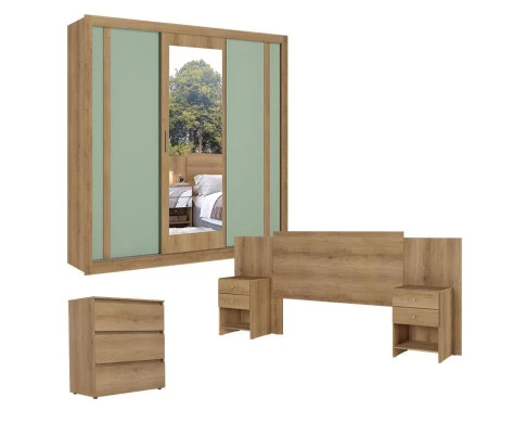 Complete seu quarto com estilo e praticidade! O Guarda-Roupa Ibiza Glass possui 3 portas e amplo espaço interno para roupas e acessórios. A Cômoda Gaveteiro Condessa oferece armazenamento extra, enquanto a Cabeceira Formosa finaliza o conjunto com elegância. Estrutura resistente em MDP e acabamento Capuccino/Menta Flex, ideal para um quarto moderno e organizado.