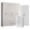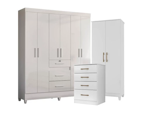 Guarda Roupa Casal Itatiba com Cômoda MS913 e Armário Multiuso Jade Branco Brilho – Moval