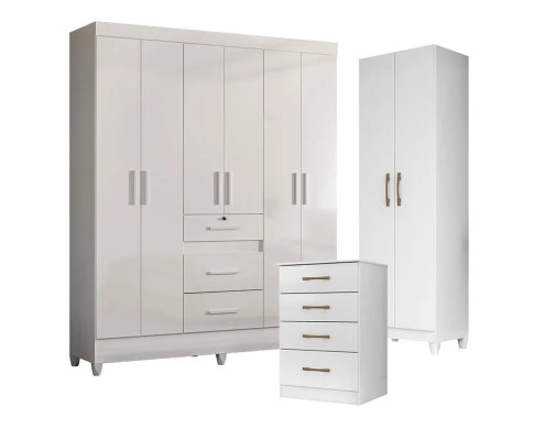 Guarda Roupa Casal Itatiba com Cômoda MS913 e Armário Multiuso New Íris Branco Brilho – Moval