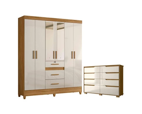Guarda Roupa Casal Itatiba com espelho e Cômoda Georgia Freijó Off White – Moval