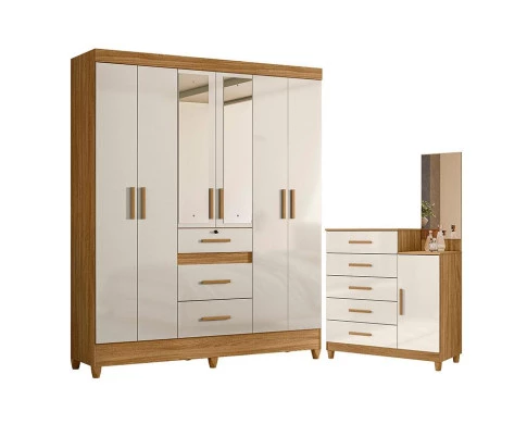 Organize seu quarto com elegância e o melhor custo benefício do mercado. Apresentamos o Guarda Roupa Casal Itatiba e Cômoda Lisboa fabricados pela Moval. Guarda Roupa possui 06 portas sendo as centrais com espelho, 03 gavetas com corrediças metálicas sendo a primeira gaveta equipada com chave, puxadores em MDF, cabideiros em alumínio para melhor organização interna e pés em PVC. A cômoda possui 05 gavetas com corrediças metálicas, painel com espelho, puxadores em MDF e pés em PVC. Fabricado com materiais de alta qualidade que garante resistência e durabilidade ao produto. Confira mais detalhes e aproveite!