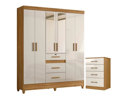 Guarda Roupa Casal Itatiba com espelho e Cômoda MS913 Freijó Off White – Moval
