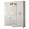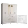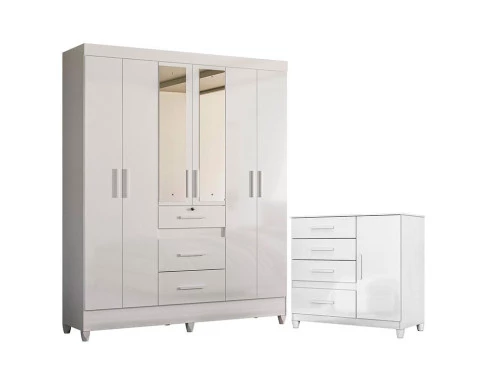 Guarda Roupa Casal Itatiba com espelho e Cômoda Vênus com pés Branco Brilho – Moval
