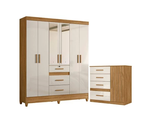 Organize seu quarto com elegância e o melhor custo benefício do mercado. Apresentamos o Guarda Roupa Casal Itatiba e Cômoda Vênus fabricados pela Moval. Guarda Roupa possui 06 portas, 03 gavetas com corrediças metálicas sendo a primeira gaveta equipada com chave, puxadores em MDF, cabideiros em alumínio para melhor organização interna e pés em PVC. A cômoda possui 04 gavetas com corrediças metálicas, 01 porta com detalhe frisado e puxadores em MDF. Fabricado com materiais de alta qualidade que garante resistência e durabilidade ao produto. Confira mais detalhes e aproveite!