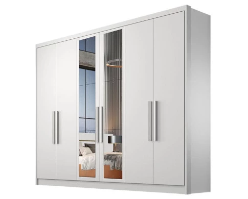 Guarda Roupa Casal Linea 6 Portas 6 Gavetas Neve com Espelho – Novo Horizonte