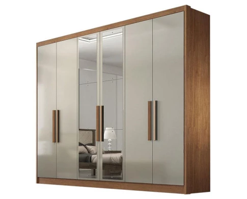 Guarda Roupa Casal Linea 6 Portas 8 Gavetas Cumaru 25 Fendi com Nicho e Espelho – Novo Horizonte