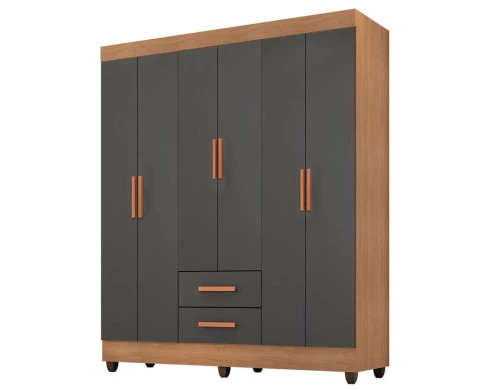 Guarda Roupa Casal Lite 6 Portas Nature Cinza – Móveis Leão