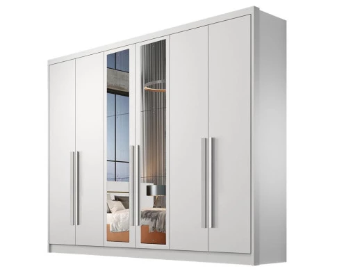 Guarda Roupa Casal Livorno 6 Portas 4 Gavetas Neve com Espelho – Novo Horizonte
