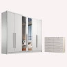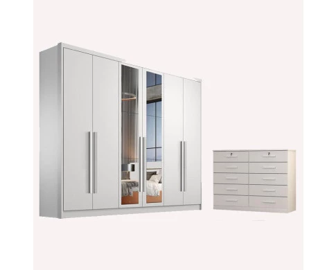 Guarda Roupa Casal Livorno com Espelho e Gaveteiro Milão com Chave Neve - Novo Horizonte