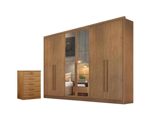 Guarda Roupa Casal Livorno com Espelho e Gaveteito Suiça Cumaru 23 - Novo Horizonte