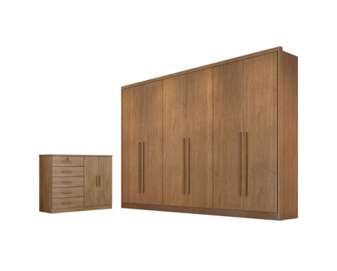 Guarda Roupa Casal Livorno com Nicho e Cômoda Seul Cumaru 23 - Novo Horizonte