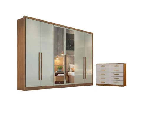 Apresentamos aquela combinação ideal para que seu quarto fique elegante e funcional. Guarda-roupa da linha Livorno e Gaveteiro da linha Milão, fabricados com materiais de altíssima qualidade em MDP/MDF, com um lindo design moderno, o guarda roupa possui várias repartições, gavetas, prateleiras amplo espaço interno garantindo mais organização. O gaveteiro possui 10 gavetas equipadas com corrediças telescópicas garantindo suavidade para manusear. Deixe seu ambiente mais aconchegante, não perca tempo adquira já!