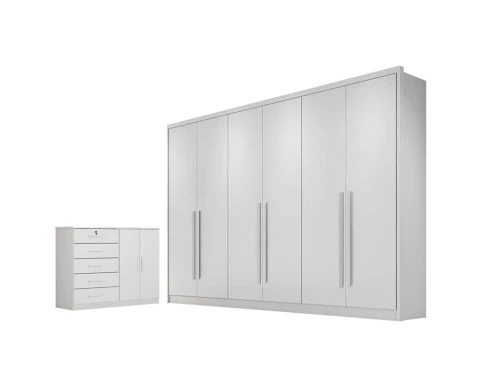 Guarda Roupa Casal Livorno e Cômoda Seul com Chave Neve - Novo Horizonte