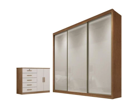 Guarda Roupa Casal Londres com Nicho e Cômoda Seul Cumaru 25 Fendi - Novo Horizonte