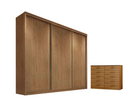 Para que seu quarto fique mais bonito e funcional, apresentamos esse conjunto composto pelo guarda roupa da linha Londres e a cômoda da linha Milão fabricado pela Novo horizonte. O guarda roupa possui amplo espaço interno, gavetas, prateleiras. O gaveteiro possui 10 gavetas equipadas com corrediças telescópicas trazendo suavidade ao abrir e fechar. Aproveite e garanta já o seu
