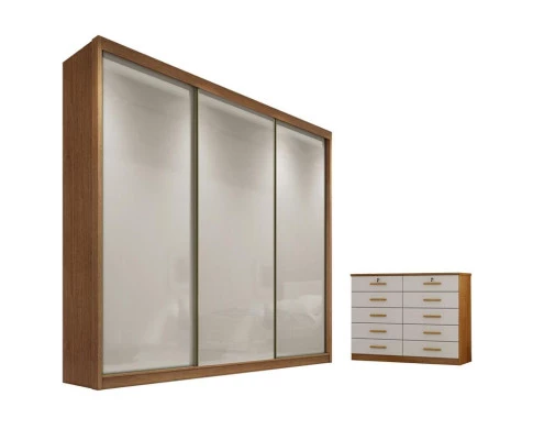 Guarda Roupa Casal Londres com Nicho e Gaveteiro Milão com Chave Cumaru 25 Fendi - Novo Horizonte
