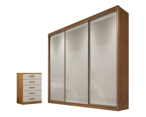 Guarda Roupa Casal Londres com Nicho e Gaveteiro Suiça Cumaru 25 Fendi - Novo Horizonte