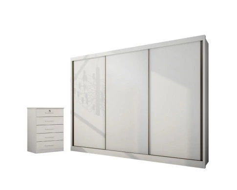 Aqui você encontra móveis de excelente qualidade. A combinação perfeita para que seu quarto fique mais bonito e aconchegante. Apresentamos o guarda roupa da linha Londres desenvolvido um design moderno e com materiais de alta qualidade. Possui amplo espaço interno para acomodar de forma organizada suas roupas e seus itens de sua preferência. Para deixar ainda mais funcional seu ambiente, a cômoda da linha Suiça possui 5 gavetas equipadas com corrediças telescópicas trazendo mais suavidade para manusear complementando o guarda roupa. Confira e garanta já o seu!