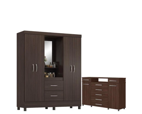 Guarda Roupa Casal Lord com Cômoda London Café - Demóbile