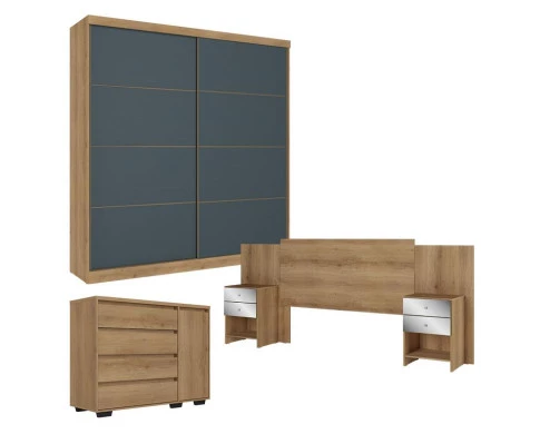 Guarda Roupa Casal Malaga 2 Portas Capuccino Azul com Cômoda com Porta Aurora e Cabeceira Formosa Glass Capuccino- THB