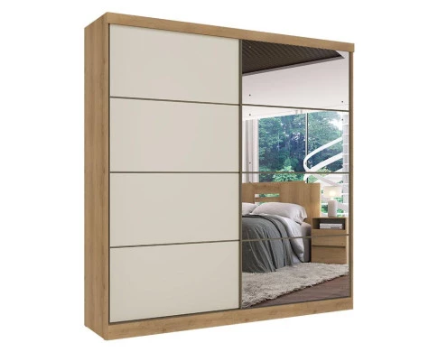 Guarda Roupa Casal Malaga Full Glass 2 Portas Capuccino Off White Acetinado - THB