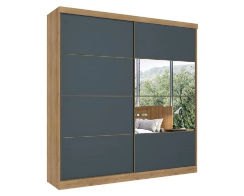 Guarda Roupa Casal Malaga Glass 2 Portas Capuccino Azul Acetinado - THB