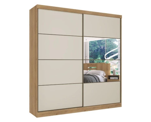 Guarda Roupa Casal Malaga Glass 2 Portas Capuccino Off White Acetinado - THB