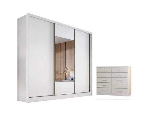 Guarda Roupa Casal Medelim com Espelho e Gaveteiro Milão com Chave Neve - Novo Horizonte