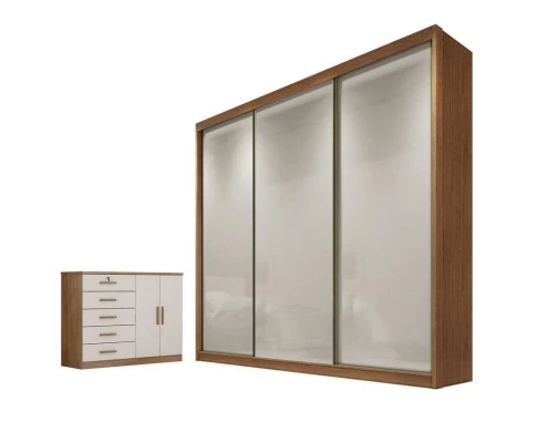 Guarda Roupa Casal Medelim e Cômoda Seul Cumaru 25 Fendi - Novo Horizonte