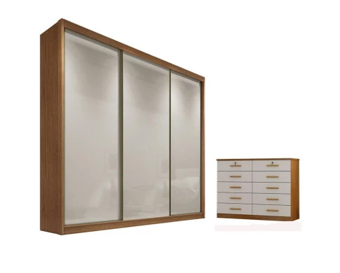 Guarda Roupa Casal Medelim e Gaveteiro Milão com Chave Cumaru 25 Fendi - Novo Horizonte