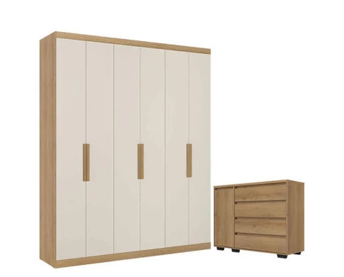Uma escolha perfeita para seu quarto é esse conjunto de móveis o Guarda Roupa Casal Milan 6 Portas é a combinação perfeita de modernidade e funcionalidade para o seu quarto. Com design elegante, acabamento sofisticado e tonalidades que unem o charme e a Cômoda com Porta Aurora ela traz aconchego e sofisticação ao quarto, harmonizando facilmente com diferentes estilos de decoração. Desenvolvidos pela THB com toda qualidade para você cliente.