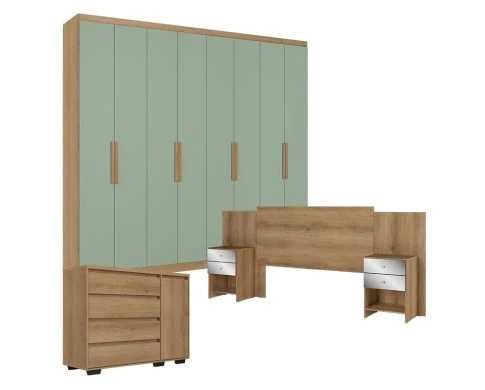 Transforme seu quarto com o Guarda-Roupa Casal Milan 8 Portas Capuccino/Menta, a Cômoda com Porta Aurora e a Cabeceira Formosa Capuccino. Um conjunto completo que oferece excelente espaço interno, organização prática e um design moderno com toque de elegância. Ideal para quem busca qualidade, estilo e funcionalidade em um só ambiente!