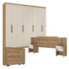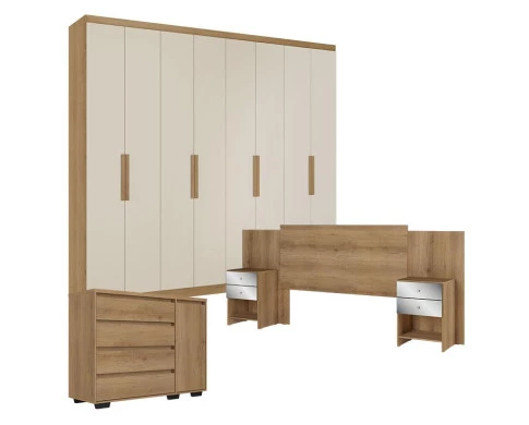 Transforme seu quarto com o Guarda-Roupa Casal Milan 8 Portas Capuccino/Off White, acompanhado da Cômoda com Porta Aurora e da Cabeceira Formosa Capuccino. Um conjunto completo que oferece excelente espaço interno, organização e um visual moderno e elegante. Ideal para quem busca praticidade, estilo e qualidade em um só lugar. Aproveite para renovar seu ambiente com muito bom gosto!