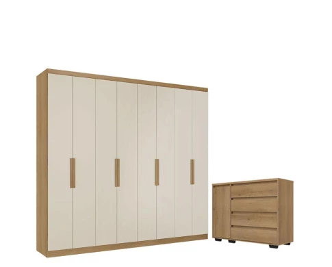 Guarda Roupa Casal Milan 8 Portas Capuccino Off White e Cômoda com Porta Aurora Cappuccino - THB