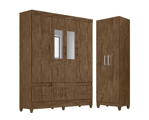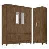 Guarda Roupa Casal MS912 com Espelho e Armário Multiuso New Íris Castanho Wood - Moval
