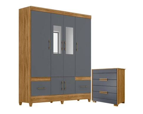 Guarda Roupa Casal MS912 com espelho e Cômoda Dhara Freijó Cinza – Moval