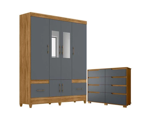 Guarda Roupa Casal MS912 com espelho e Cômoda Georgia Freijó Cinza – Moval