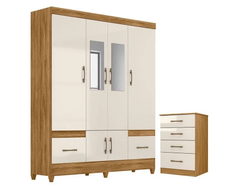 Guarda Roupa Casal MS912 com espelho e Cômoda MS913 Freijó Off White – Moval