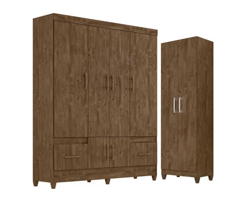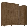 Guarda Roupa Casal MS912 e Armário Multiuso New Íris Castanho Wood - Moval