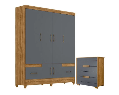 Guarda Roupa Casal MS912 e Cômoda Dhara Freijó Cinza – Moval