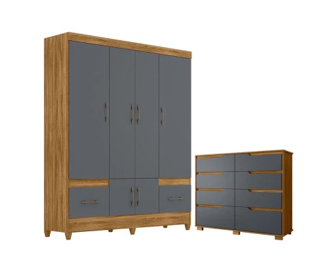 Guarda Roupa Casal MS912 e Cômoda Georgia Freijó Cinza – Moval