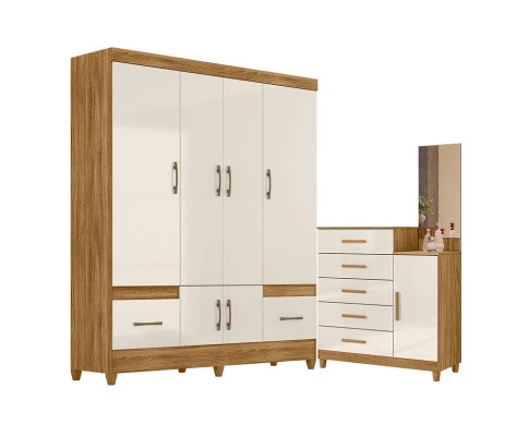 Guarda Roupa Casal MS912 e Cômoda Lisboa Freijó Off White – Moval