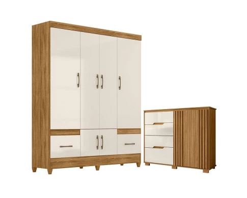 Organize seu quarto com elegância e o melhor custo benefício do mercado. Apresentamos o Guarda Roupa Casal MS912 e Cômoda Texas fabricados pela Moval. Guarda Roupa possui 06 portas, 02 gavetas com corrediças metálicas, puxadores em MDF, cabideiros em alumínio para melhor organização interna e pés em PVC. A cômoda possui 04 gavetas com corrediças telescópicas, dobradiças 35mm com amortecedor, portas com detalhes ripados, puxadores usinados e pés em PVC. Fabricado com materiais de alta qualidade que garante resistência e durabilidade ao produto. Confira mais detalhes e aproveite!