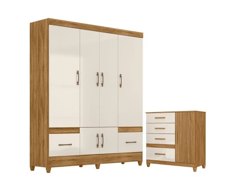 Guarda Roupa Casal MS912 e Cômoda Vênus com pés Freijó Off White – Moval