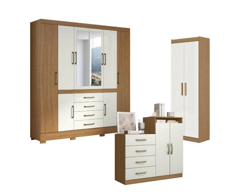 Guarda Roupa Casal Nápole 2045149 e Armário Multiuso 2000191 e Cômoda Londres Atacama Off White - Aramóveis