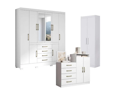 Guarda Roupa Casal Nápole 2045149 e Armário Multiuso 2000191 e Cômoda Londres Branco - Aramóveis